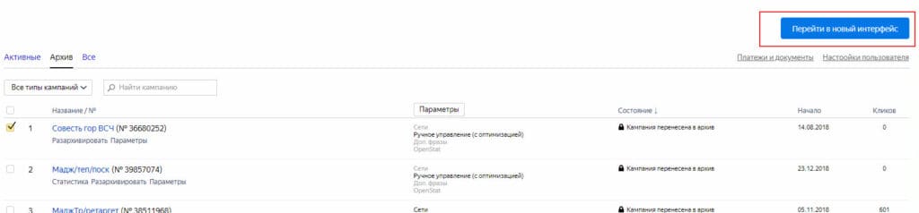 Удаление рекламной кампании Яндекс Директ в новом интерфейсе