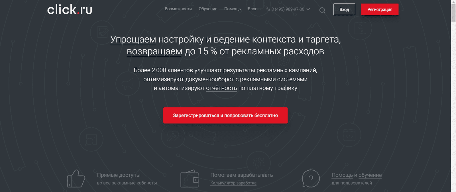 Сервис регулярно проводит обучающие вебинары и развивает инструменты для подбора ключевых слов, упрощает таргетинг и указывает на малоэффективные настройки по мнению алгоритмов Click.ru.