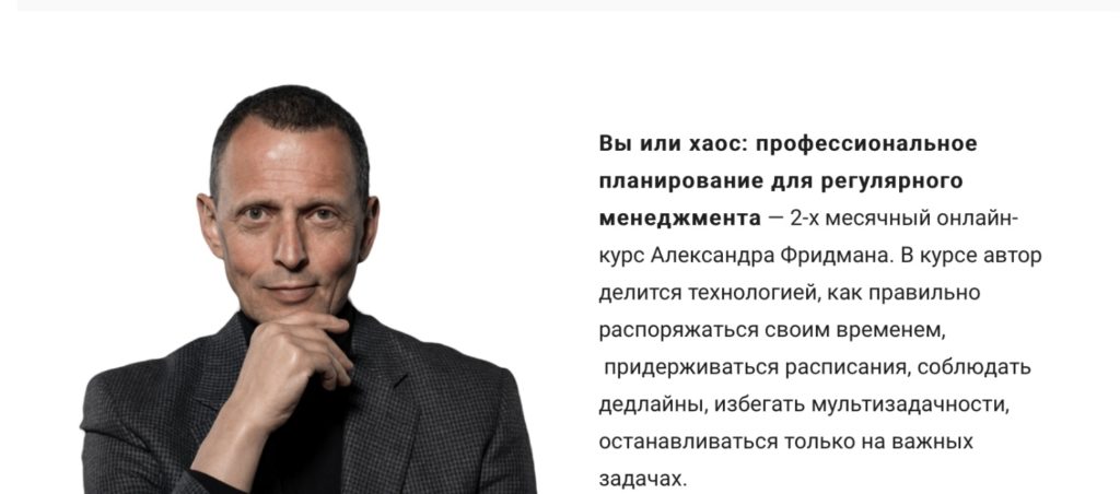 Онлайн курс рассчитан на обучение индивидуальной организации труда, делегировании задач и расстановке приоритетов. После изучения программы каждый ученик найдет для себя больше времени для отдыха, без влияния на эффективность работы.