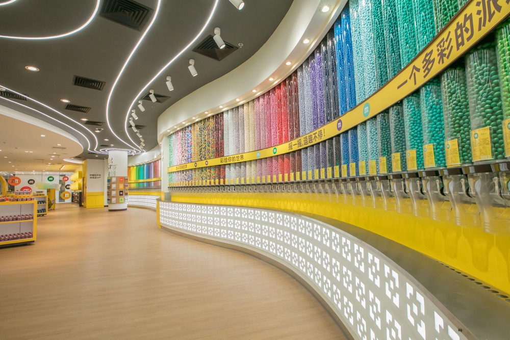 Хотя фирменные магазины M&M существуют по всему миру, их появление в новых городах всегда вызывает положительную реакцию. M&M’s World Shanghai в Шанхае — это больше, чем просто кондитерская, в которой продаются всемирно известные драже M&M’s. У клиентов есть возможность испытать новый потребительский опыт, основанный на персонализации. В зале находится Великая Стена Шоколада, состоящая из 167 огромных дозаторов с различными видами драже. Более миллиона M&Ms рассортированы по вкусу и цвету, и вы можете выбрать любой. Здесь также можно купить брендовые товары, эксклюзивные товары, вдохновленные Китаем, отсканированные в «анализаторе настроения» и распечатанные на принтере персонализированные этикетки товаров.