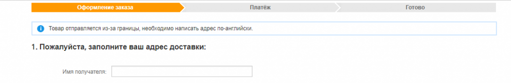 Важно заполнять анкету вашего заказа полностью латиницей – адрес должен быть указан в международном формате, имя получателя – латиницей, с указанием отчества (обязательно), в противном случае вы не сможете получить посылку. Действуйте по алгоритму: