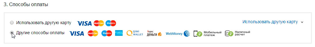 Вы также можете выбрать другой способ оплаты – WebMoney, PayPall и другие, воспользовавшись кнопками в нижней части формы.