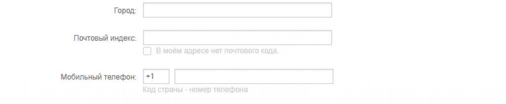 Шаг 5. Укажите город, почтовый индекс вашей улицы и свой телефон в международном формате – через +7;