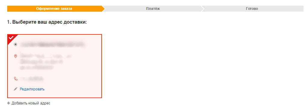 Шаг 7. Страница обновится – на розовом фоне вы увидите адрес доставки, который необходимо проверить, и кнопку Добавить адрес под ним – нажав на нее вы сможете добавить еще один адрес доставки для сохранения и в дальнейшем выбирать, на какой именно доставлять ту или иную посылку;
