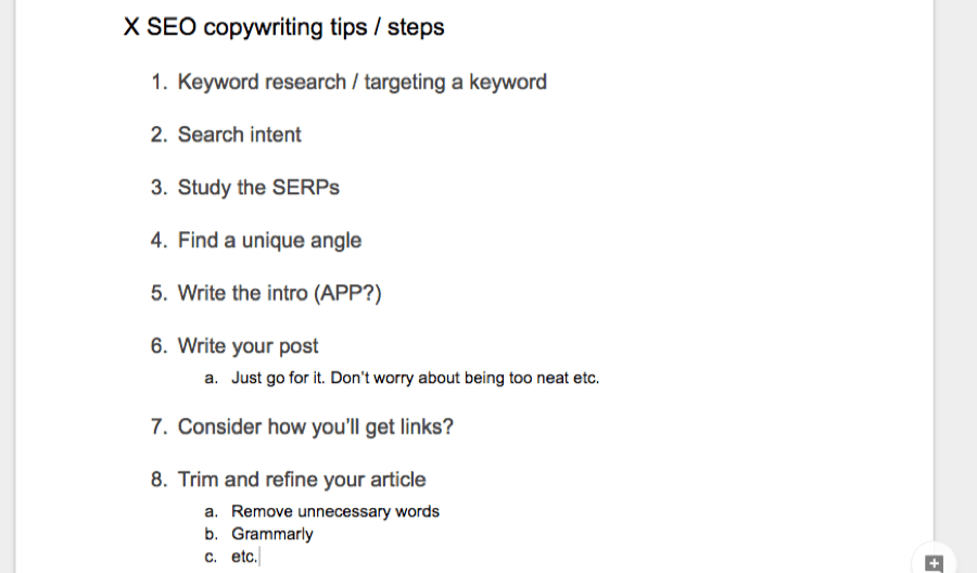 Все моменты, хорошие и плохие, я записал в таблицу. Теперь у меня есть список проблем страниц из топа, которые я могу улучшить в собственном тексте.
