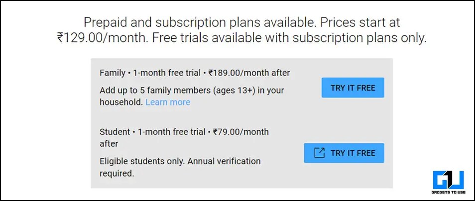 - Семейный план (ежемесячный) — этим планом могут пользоваться до 5 человек из вашей семьи (в возрасте от 13 лет) и стоит рупий. 189 / мес.