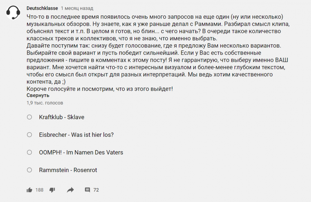 Можно запостить похожий опрос в «Сообществе» — он будет показан в блоке «Новости YouTube»