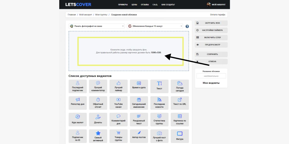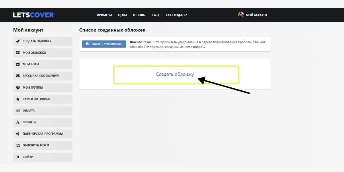 После регистрации нажмите «Создать обложку».