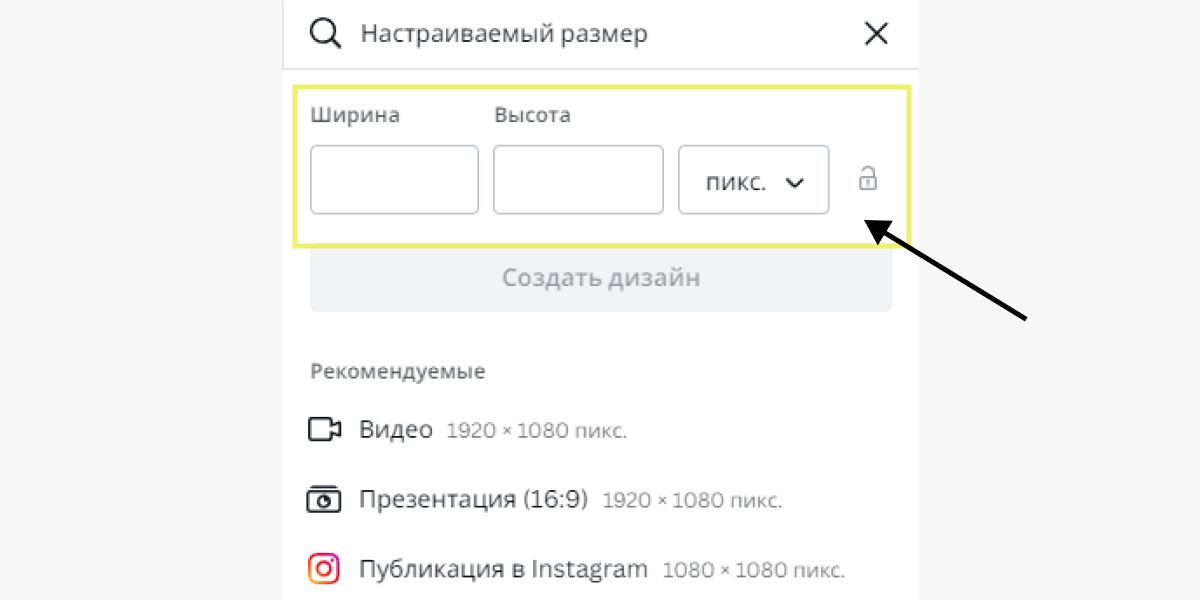 Настраиваемый размер в Канве