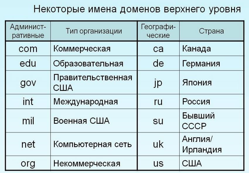 Доменное имя — это не просто набор символов; многие из них строго классифицированы и относятся к узкой категории. Различия между доменами ru, com и net сведены в Табл. 1