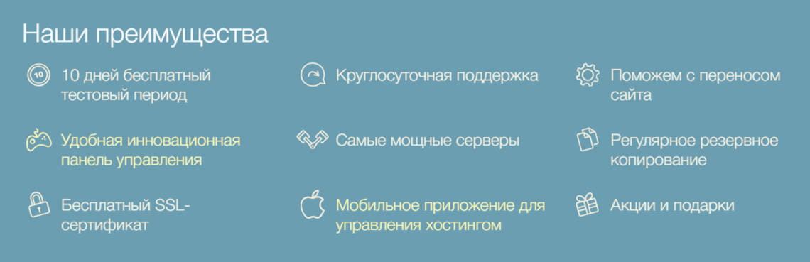 - бесплатный перенос сайтов с других хостингов;