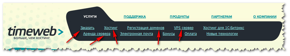 олучить аккаунт в TimeWeb можно при заказе какой-либо услуги. Проходим во вкладку — Услуги (она открыта по умолчанию) и выбираем нужную нам.