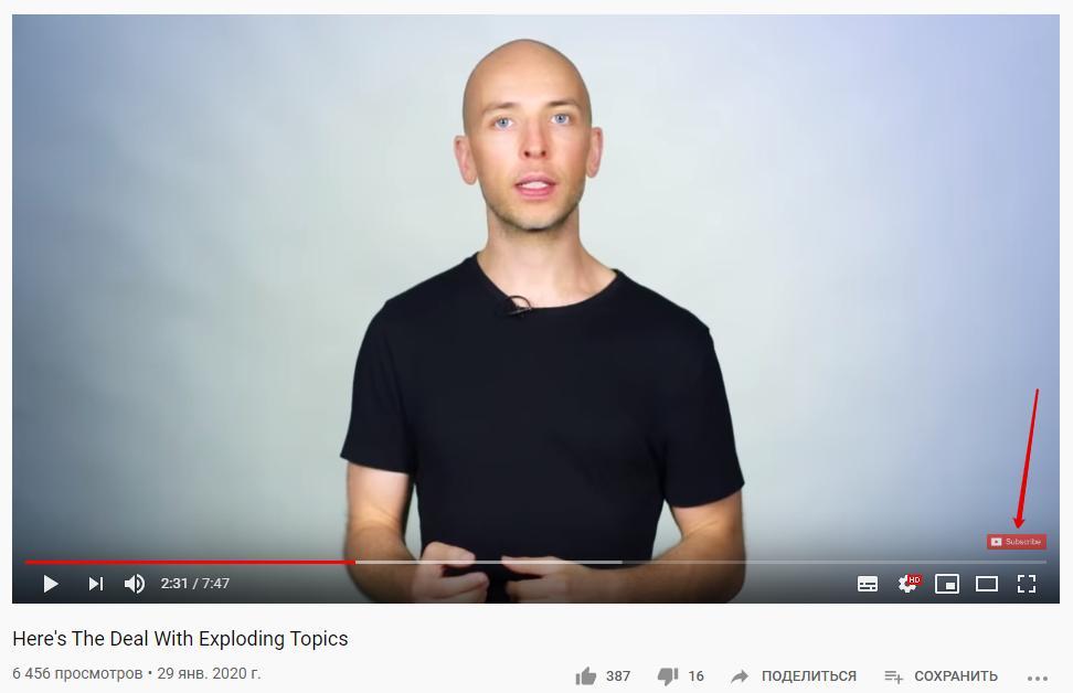 С другой стороны, некоторым пользователям будет непонятно, что можно кликнуть на этот значок, чтобы вышла кнопка «Подписаться». Брайан Дин поделился своим опытом: сначала он использовал аватарку канала в качестве водяного знака, но когда поменял его на кнопку «Subscribe», конверсия в подписчиков увеличилась на 70%.