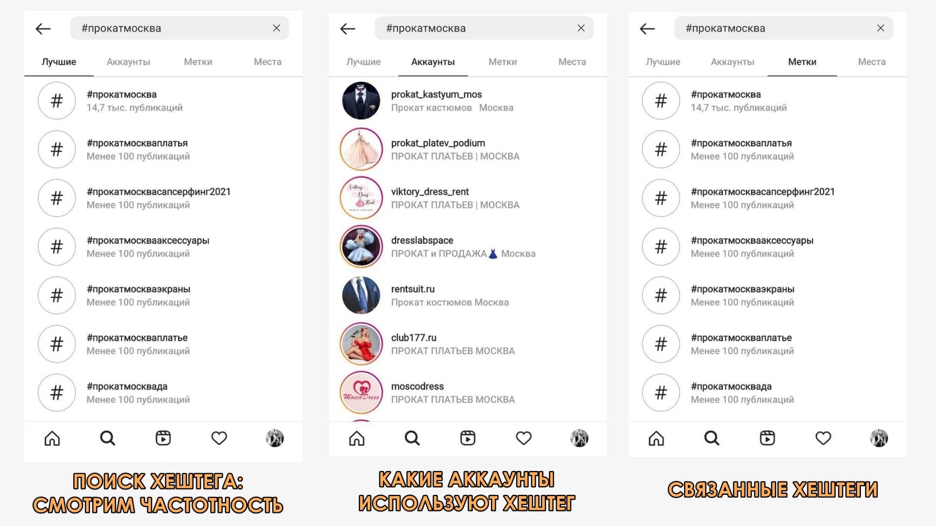 Пример: хештег #россия – высокочастотный. С ним сделано уже больше 50 миллионов публикаций. #прокатмосква – малочастотный хештег, у него всего 14 тысяч публикаций.