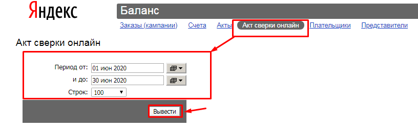 В Яндекс.Балансе вы можете сформировать акт сверки за любой период по всем плательщикам.