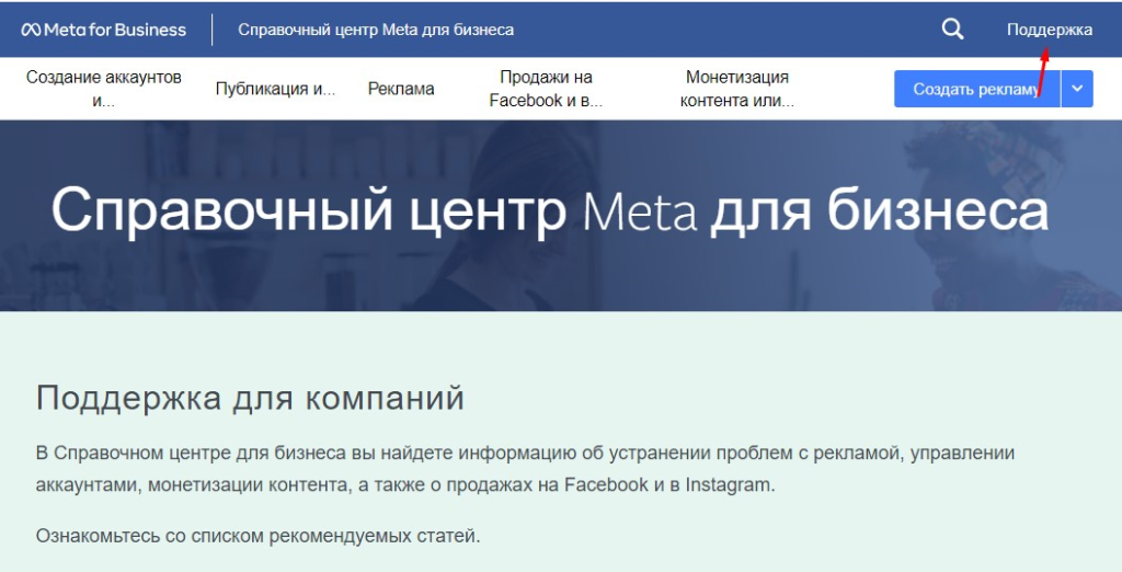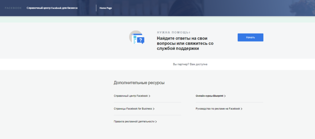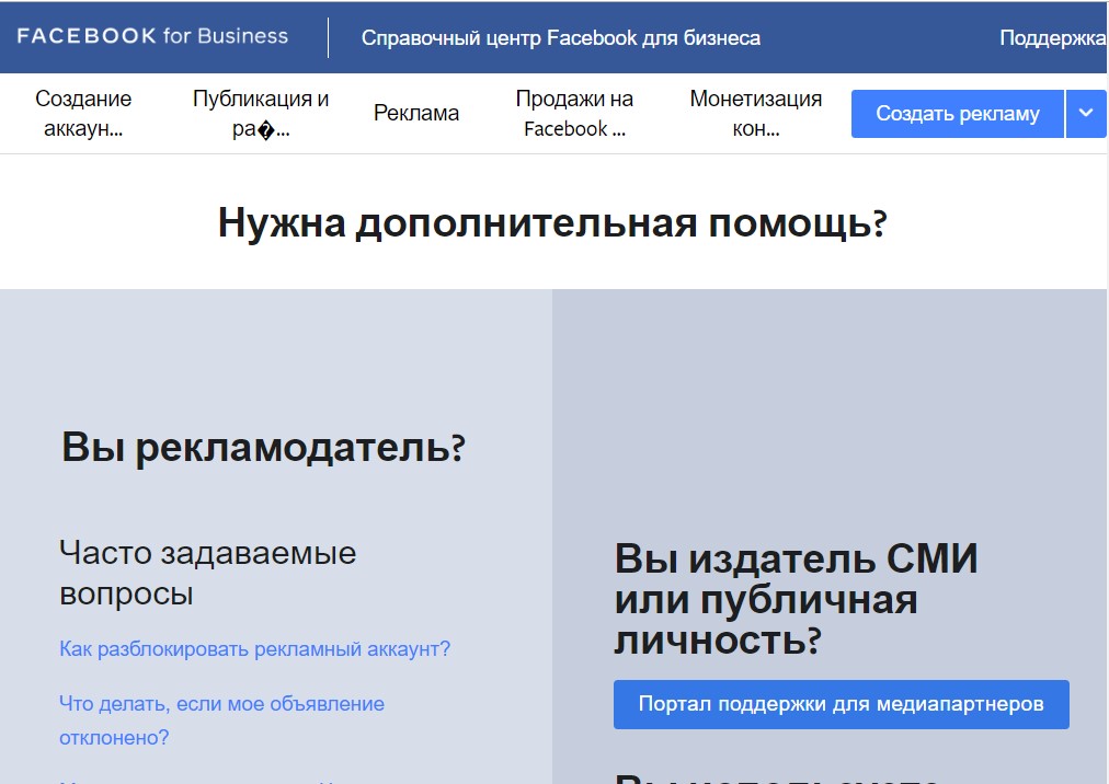 - Система перенаправит вас в справочную службу для рекламодателей Facebook Business Help.