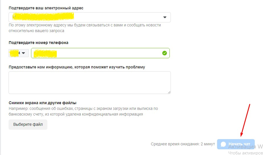 Для владельцев Facebook Business Manager есть отдельная форма обращения в Справочном центре для бизнеса. Но ссылка на чат работает только для кабинетов с хорошими бюджетами и объемами трафика.