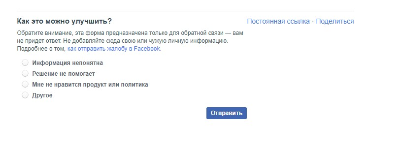 Если вы хотите отправить свои пожелания и предложения по улучшению рекламы на Фейсбук, то вы можете . На данный момент, эта форма должна заполняться на английском.