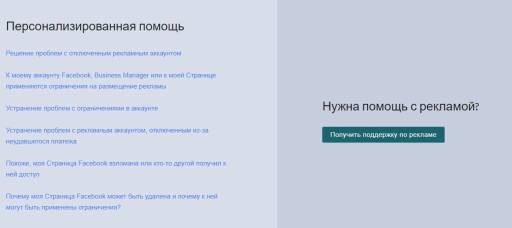 Если у вас заблокировали рекламный аккаунт, или есть другая проблема с бизнес-акком, можно попробовать обратиться в сервис поддержки Фейсбук. Не факт, что это поможет. Но иногда все-таки удается восстановить справедливость.