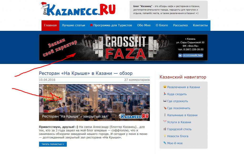 Обратите внимание на баннер вверху сайта и статью с обзором, которая закреплена в самом верху ленты постов. Вот это и есть прямая реклама