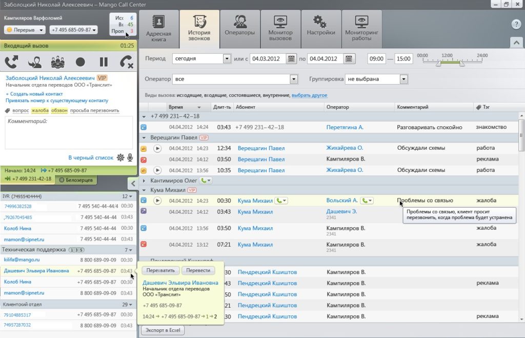 Интерфейс Mango Call Center