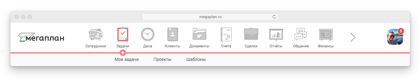Чтобы быстро поставить задачу в Мегаплане, нужно нажать на значок плюса под модулем «Задачи» в верхнем меню.