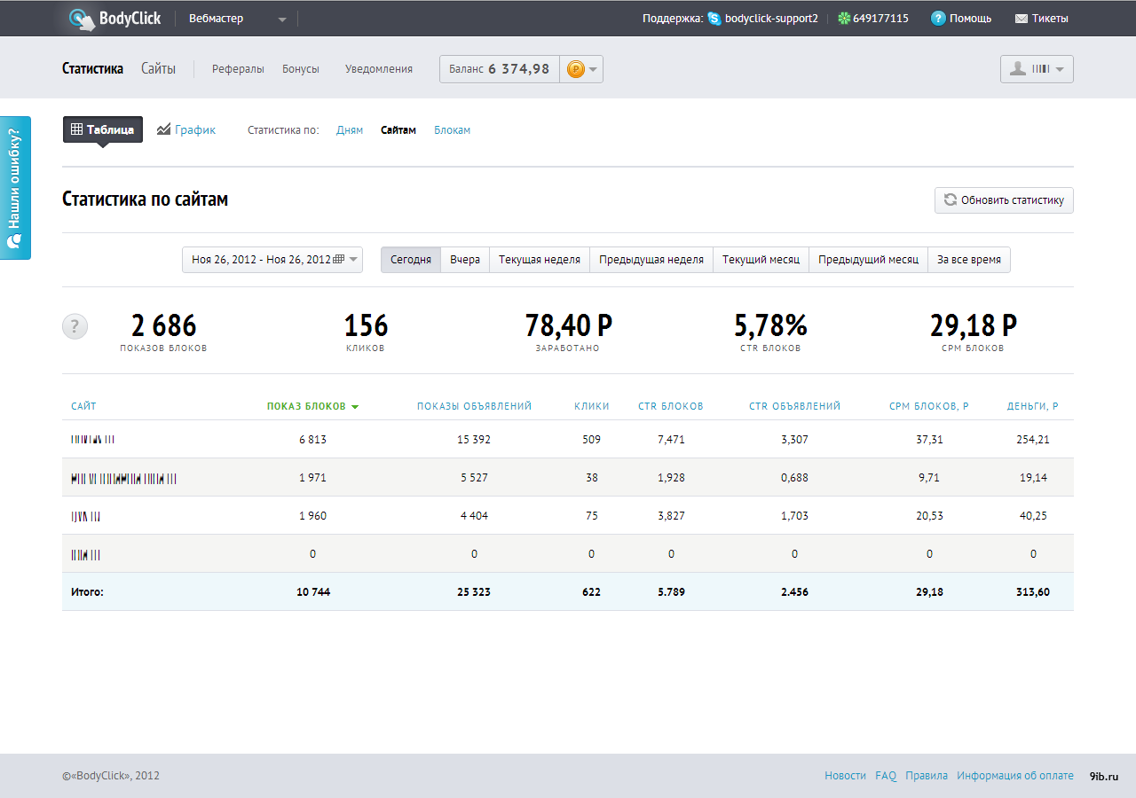 - раздельные балансы для рекламодателя и веб-мастера. При этом возможен перевод средств внутри вашего аккаунта и системы;