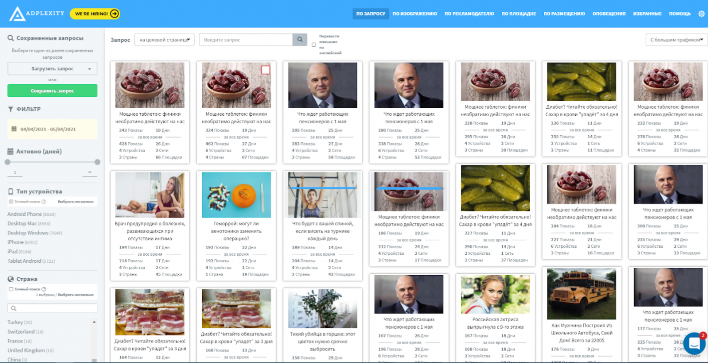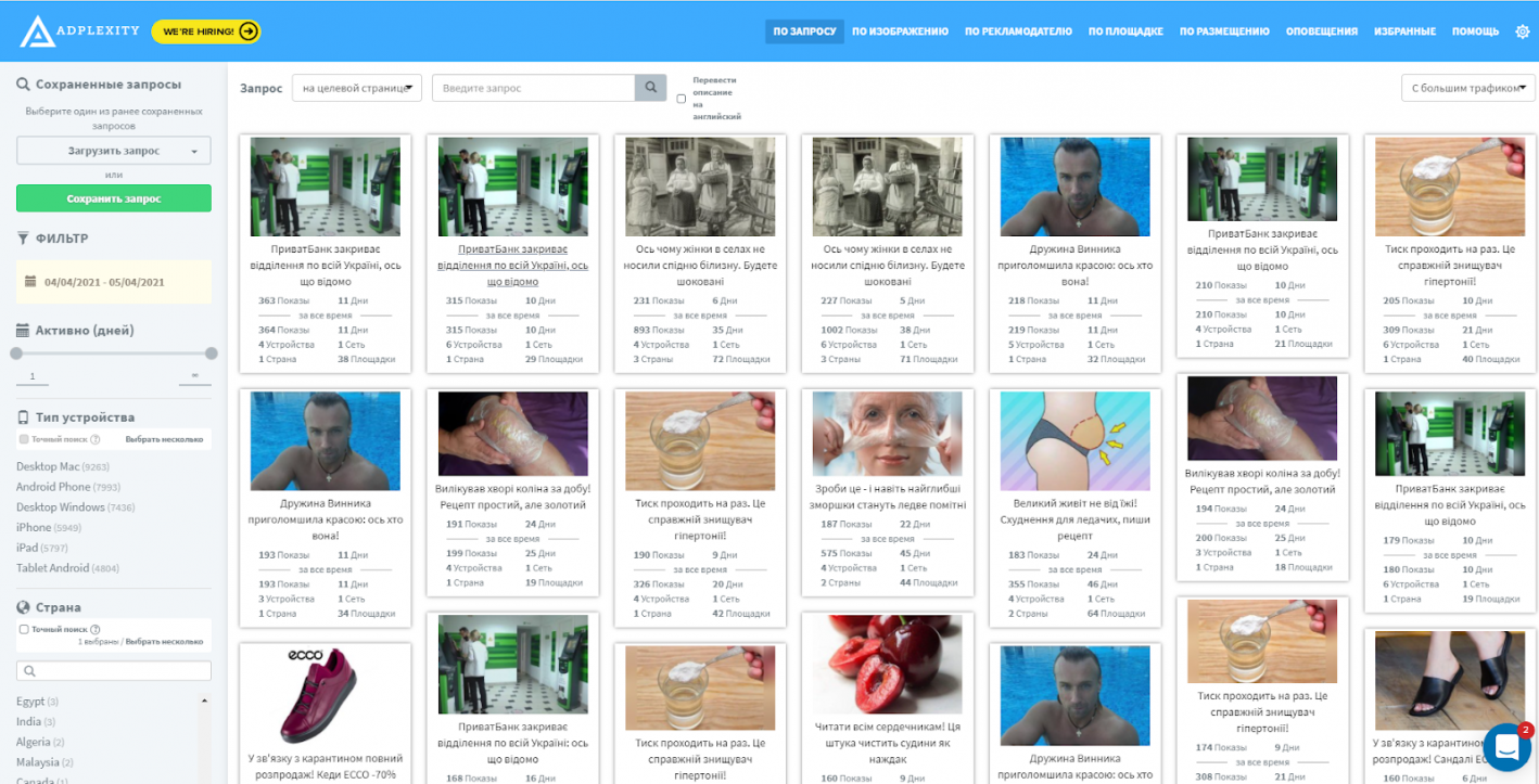 Если говорить в целом о нативном трафике в СНГ, то вот пример того, что льют за последний месяц: