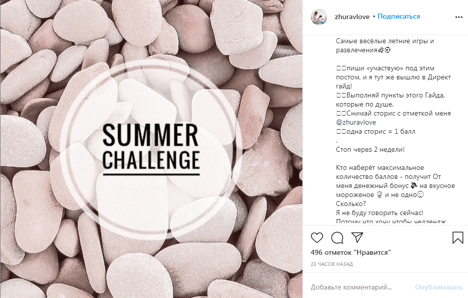 Обратите внимание — конкурсы отличаются от гивов. Даже самый простой челлендж требует усилий, которые кардинально меняет условия игры