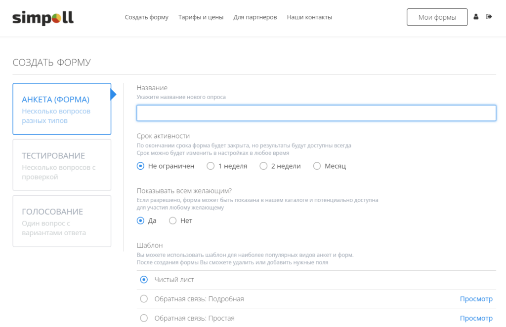 Выбирайте подходящий для себя конструктор с шаблонами для форм опросов по соотношению цены и функционала для себя.