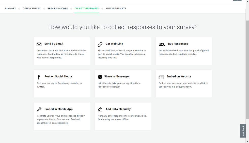 Кроме того, его простая функция обмена помогает вам отправлять свои опросы через Интернет, смартфон, Facebook и по почте, чтобы собрать информацию из вашей основной демографической группы.