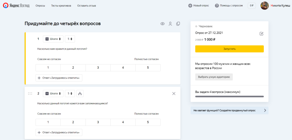 - если просто хотите опросить определенную целевую группу, рекомендуем Яндекс.Взгляд или тот же Анкетолог.