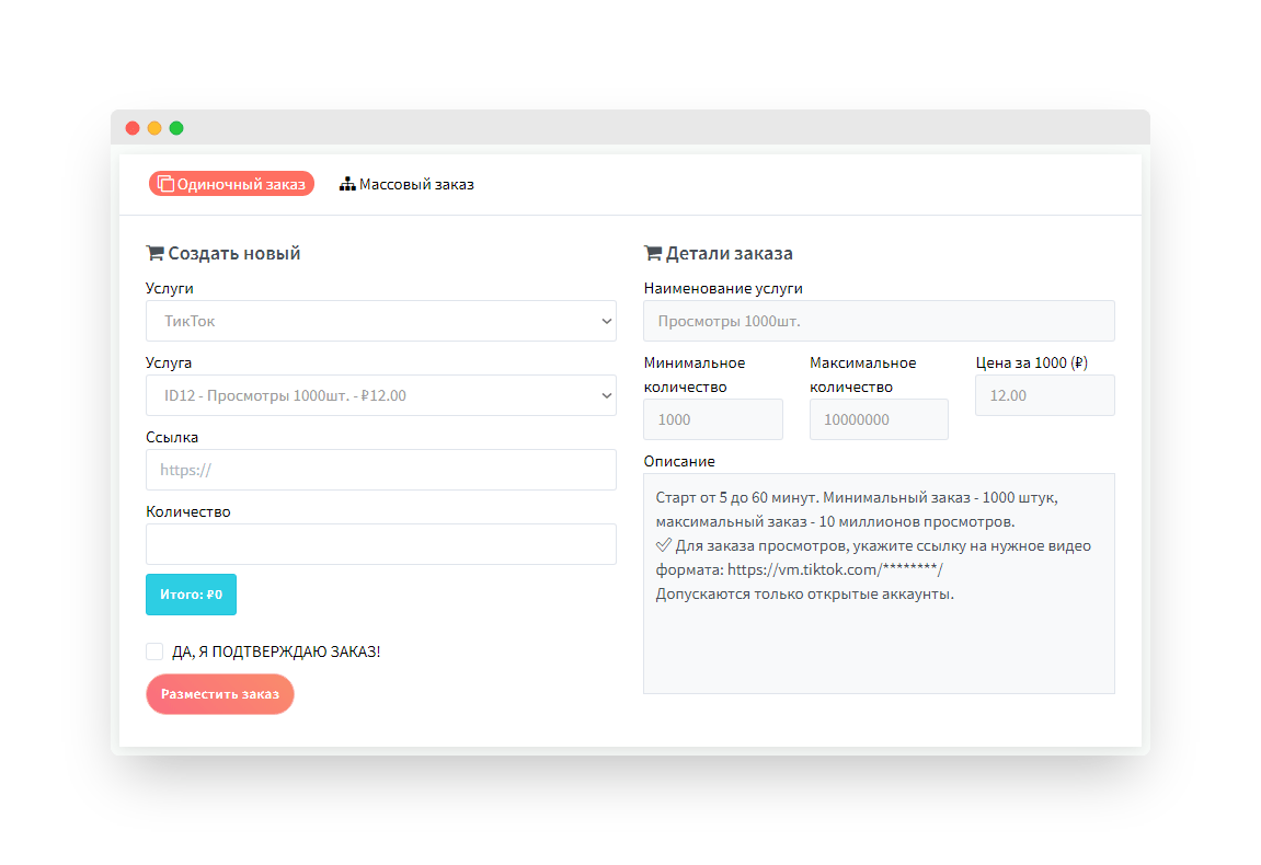 Сервис накрутки отличает простой интерфейс и универсальность. Помимо Тик Тока он может помочь в раскрутке аккаунта в любой соцсети.