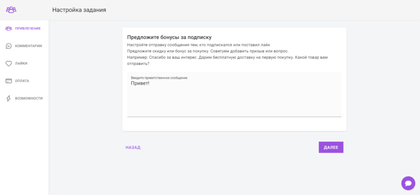После успешной регистрации потребуется только добавить свой аккаунт от инстаграма и создать новое задание на автоматическую подписку с выбранным критерием.